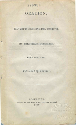 Image from: Douglass, Frederick. Oration, delivered in Corinthian Hall, Rochester, July 5, 1852. Lee, Mann & Co.: Rochester, NY, 1852.